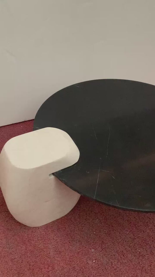 Nero Margiua Marble Coffee Table-White Travertine Block Base