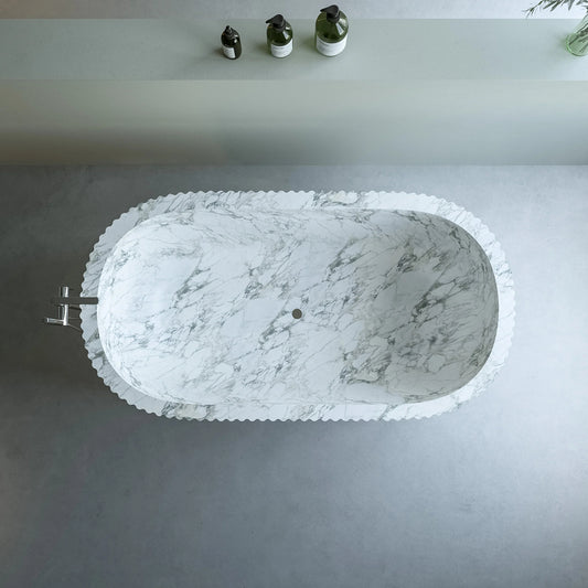 Marble Oval Bathtub | Luxury Modern Bathtub | White Marble Bathtub