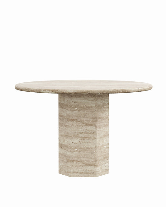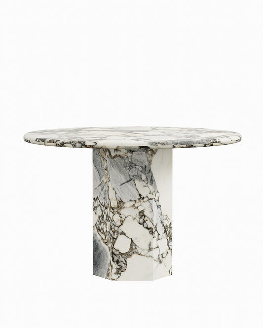 Round Ocean Storm Marble Dining Table with Hexagon Base