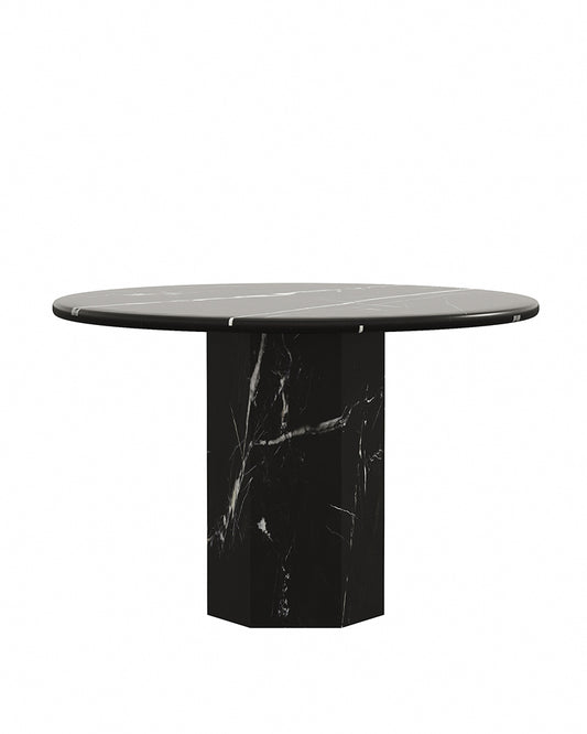 Round Nero Margiua Marble Dining Table with Hexagon Base