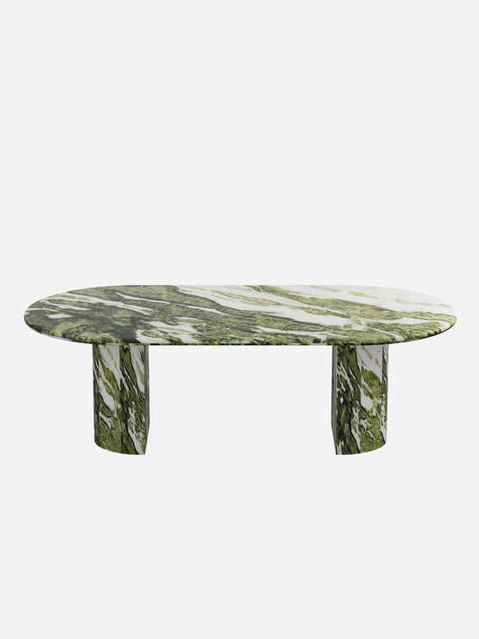 Natural Marble Green Forest Dining Table - Semi-cyl Base