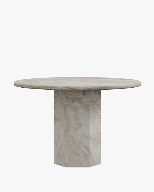 Natural Stone Taj Mahal Dining Table with Hexagon Base