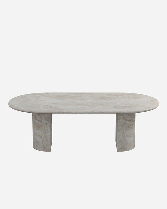 Natural Beige Travertine Double-Cylindrical Base Dining Table