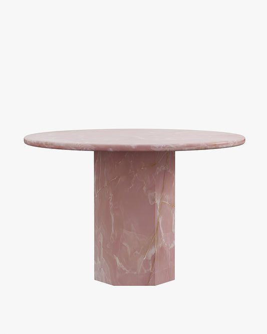 Round Pink Onyx Dining Table with Hexagon Base