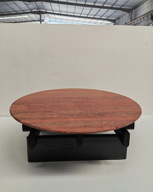 Red Travertine Marble Rectangle Plinth Coffee Table