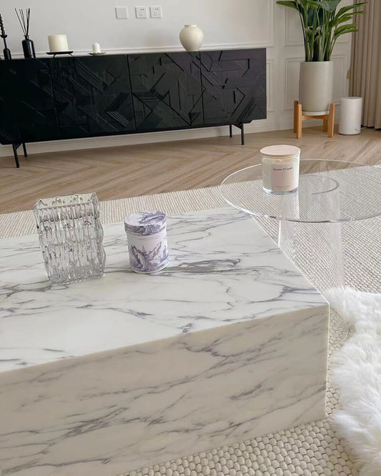 Arabescato Marble Rectangle Plinth Coffee Table