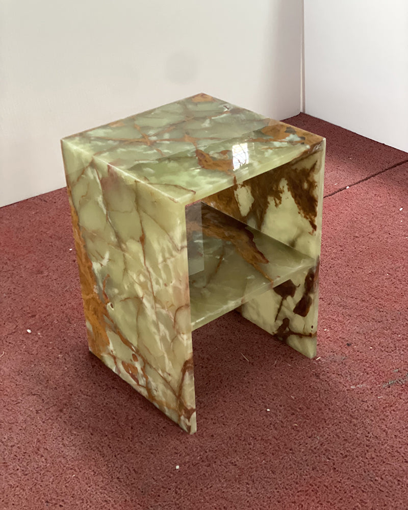 Side table made from Green Onyx is perfect for a variety of settings, from chic living rooms to elegant bedrooms or upscale offices, this Green Onyx side table brings natural beauty and opulence to any space, elevating your decor with a touch of refinement and charm.