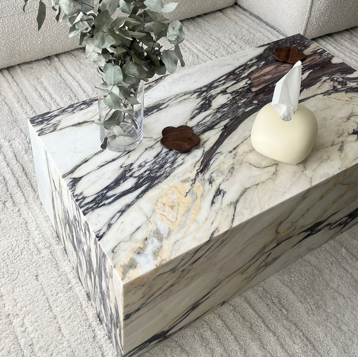 Calacatta Viola Marble Rectangle Plinth Coffee Table