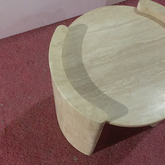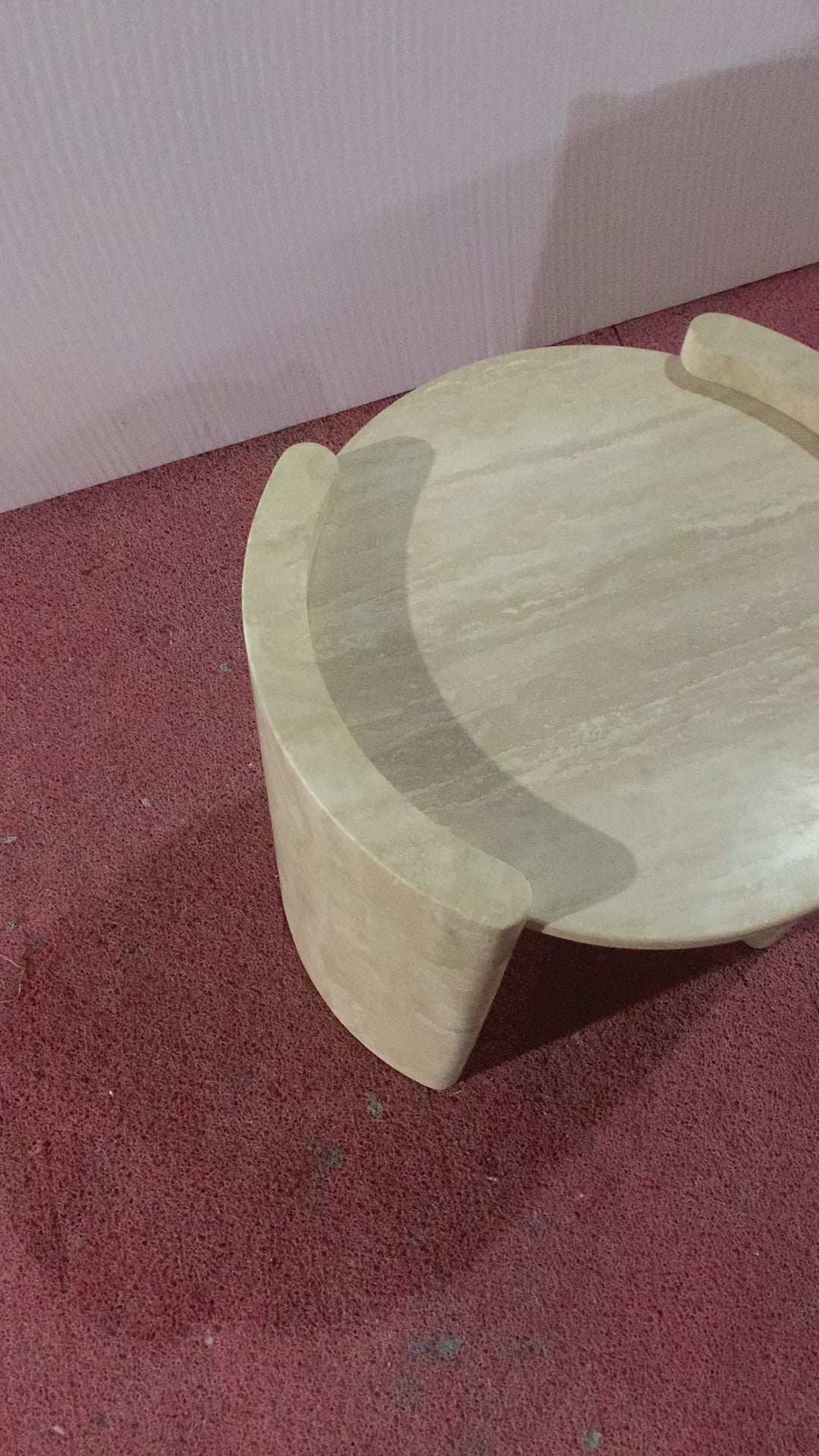 Introducing our Natural Beige Travertine Cycle Side Table, featuring a creative installation design that mimics the seamless flow of circular lines. Crafted from natural marble, this table exudes a warm and inviting atmosphere, adding a touch of creativity to your living space.