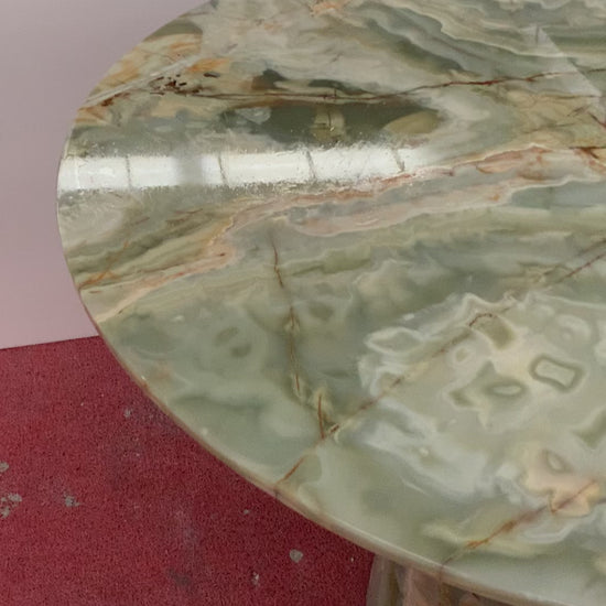 Immerse yourself in uniqueness with our Natural Green Onyx Round Dining Table featuring a Conical Base. The striking green onyx adds a touch of luxury and individuality to your dining space. Gather around this creatively designed table to elevate your dining experience with a blend of elegance and modern flair, enhancing your space with its distinctive charm and beauty.