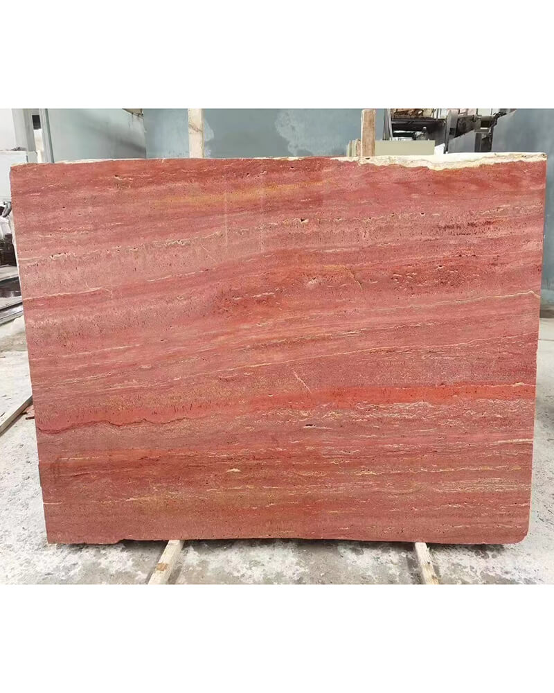 Showcases warm red tones and unique natural patterns. With its timeless design and sturdy plinth base, it adds sophistication to any living space. Elevate your home with this elegant Red Travertine Marble Coffee Table.